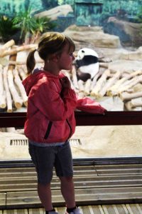 La petite Maëlys, fille de mon amie Dorothée, est devenue zoologiste junior le temps d’une journée grâce à un petit livret que ses parents lui ont acheté. Elle a pu répondre à des questions en étant l’assistante du zoologiste Tom. À son tour, elle devait observer et décrire au mieux ses observations. À présent, elle sait donc qu’un parfait zoologiste doit avoir dans sa valise une lampe de poche, des jumelles, une tente, une boussole, un bloc-notes, son passeport, son sac de randonnée, ses chaussures de randonnée, un vélo ainsi qu’un mug (il faut bien qu’il s’hydrate). Elle a pu rechercher des indices en trouvant les différentes empreintes de tel ou tel animal et leur continent d’habitation. De plus, elle sait dire, d’après les crânes et surtout les crocs, si un animal est carnivore, omnivore ou herbivore. Elle a également dû retrouver des espèces rares d’animaux qui sont présentes dans le parc. Cela était un peu difficile du haut de ses 5 ans et demi, heureusement ses parents l’ont aidé. Elle a dû dessiner son animal préféré : le panda. Pourquoi ce choix ? elle trouve ce dernier doux et mignon. Elle a appris qu’il vivait au sein d’une forêt de bambou en Chine et que sa nourriture était le bambou. Puis, que ce dernier était arrivé au zoo en 2012, qu’il aimait l’humidité. Enfin, les pandas possèdent chacun deux enclos, un à l’intérieur et un à l’extérieur. Ils font partis de la famille des ursidés. Leur maturité sexuelle est entre 4 et 5 ans.