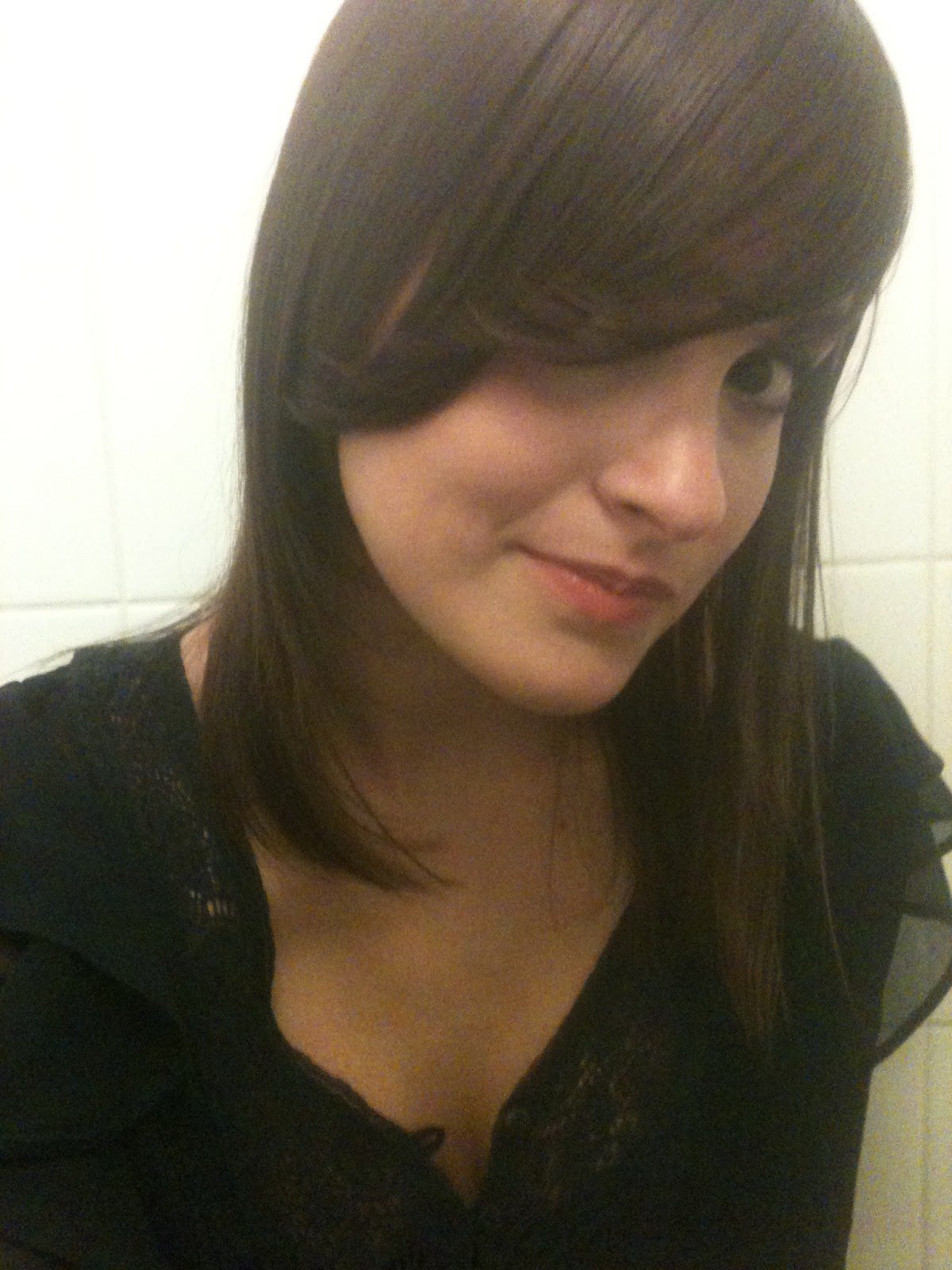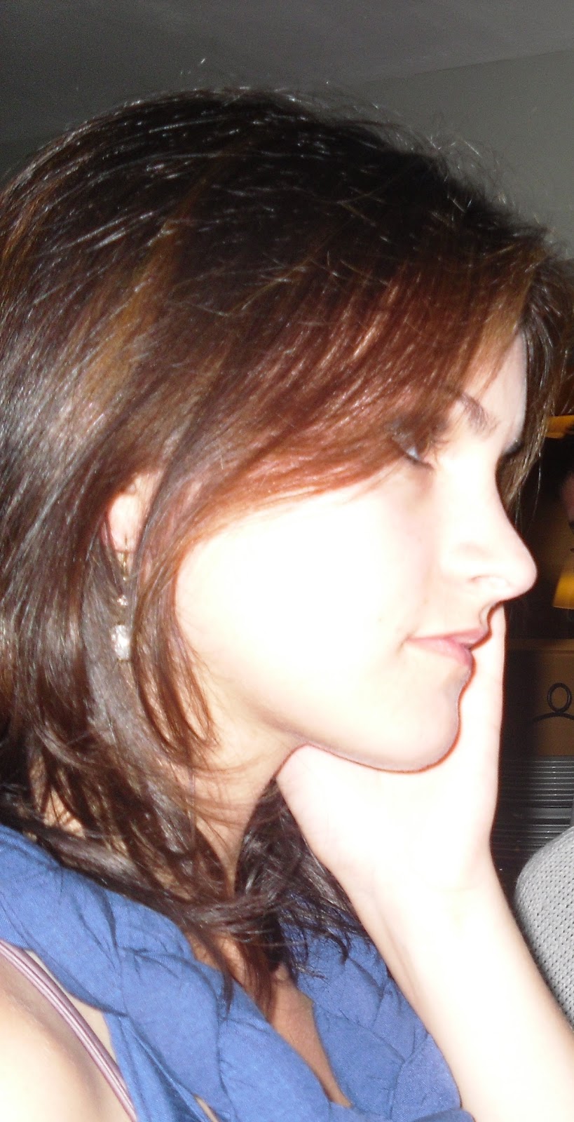 Mes cheveux aujourd’hui = colorés : châtain foncé et mèches cuivrées et lissée (lisseur) ou brushée (brosse et sèche cheveux)
