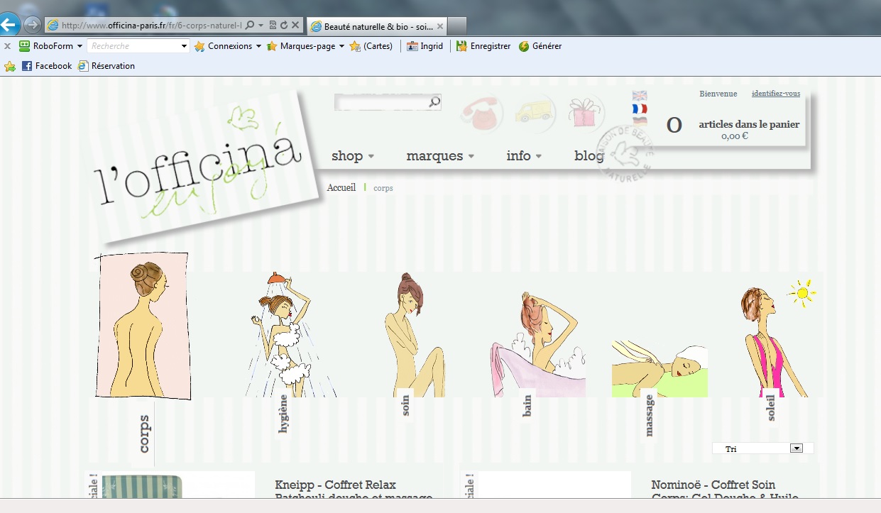 Aujourd’hui, j’aimerais vous parler d’un magasin en ligne sur lequel j’ai aimé naviguer. J’ai apprécié les visuels (des dessins simples mais sympas), le graphisme,  la rapidité à trouver les informations, les produits vendus, les marques. D’autant plus que les produits vendus sur le site sont naturels et bio. Je vais vous parler del’Officina, magasin en ligne et maison de beauté naturelle. Un magasin chaleureux et aux petits soins.