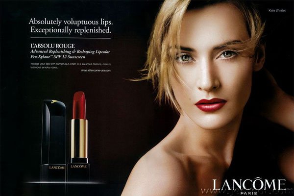 J’ai fini de vous bombarder avec mes photos, maintenant je passe aux campagnes publicitaires avec la sublime Kate Winslet, l’une des égéries Lancôme et l’Absolu Rouge qui existe en plus de 30 teintes, admirez plutôt (perso, j’ai toujours trouvé cette actrice magnifique en rousse comme en blonde) :
