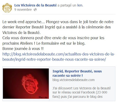 L’article en question sur le blog des Victoires de la Beauté : ICI