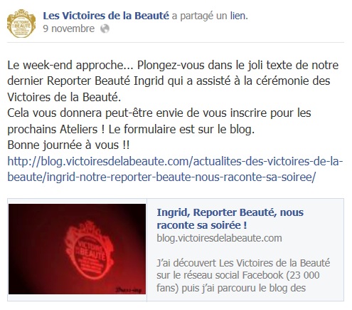 L’article en question sur le blog des Victoires de la Beauté : ICI