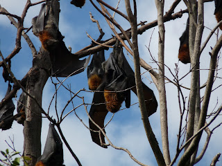 Voyez-vous, il s’agit de chauve-souris dans les arbres du parc de Sydney. C’est très surprenant, on se croirait chez Batman.