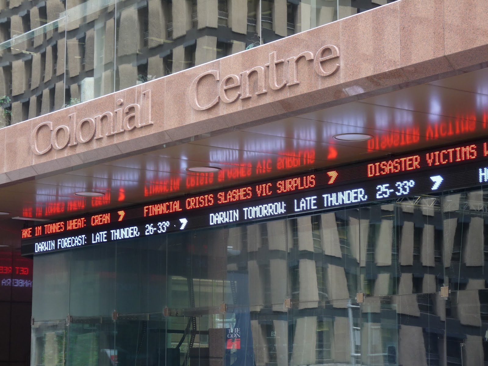 Pas mal pour suivre l’actualité au Colonial Centre de Sydney, un affichage que je n’ai pas l’habitude de voir en France !