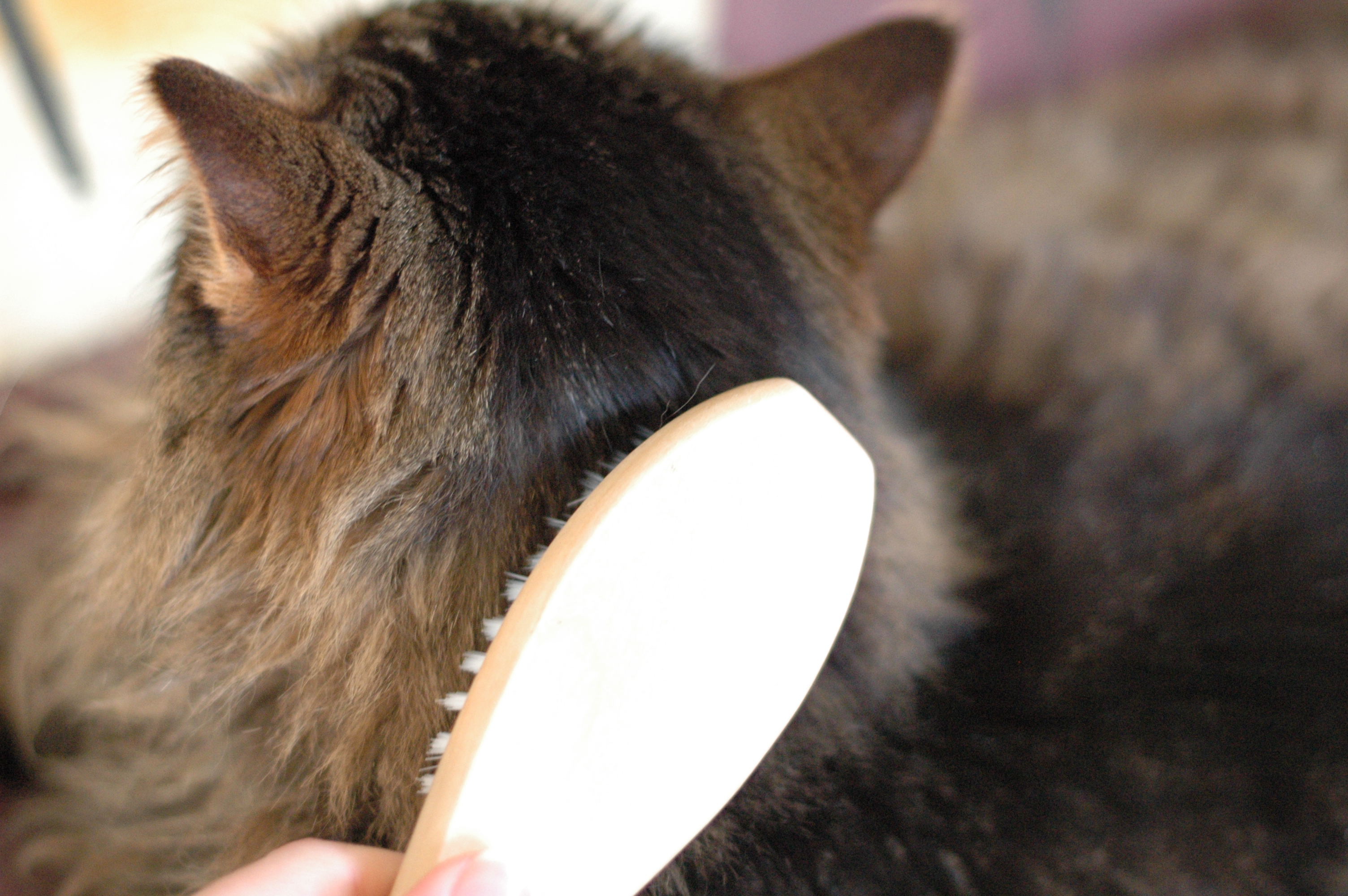 Enfin, une brosse souple était ajoutée à la box, idéal pour enlever les poils morts et laisser place à un pelage de rêve, et c’était un vrai moment de plaisir pour ce matou, regardez :
