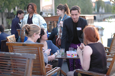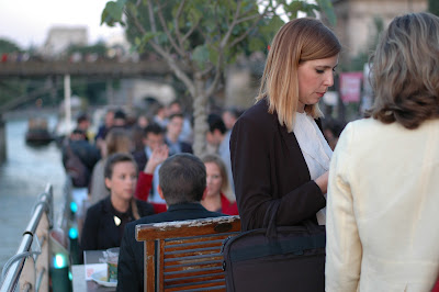 Pour ma part, je suis arrivée tout juste vers 20h, avec le dos broyé par ma valise, mon sac, les pieds en compote et toute rouge (chaleur et speed), je venais de Vitré (près de Rennes) où j’ai passé un oral d’examen et j’ai pris un train à 17h le 5 juin après-midi.. Je suis arrivée à 19h24 gare Paris Montparnasse pour ensuite courir récupérer le bus de 19h31 (qui est arrivé à 19h35 pour bien faire) en direction de la Péniche, lieu de la soirée.