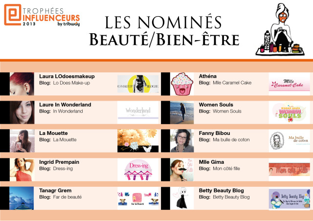 Voici le classement (Top 10) des votes du public pour le Trophée Influenceur 2013 by Tribway dans la catégorie Beauté/Bien-être :